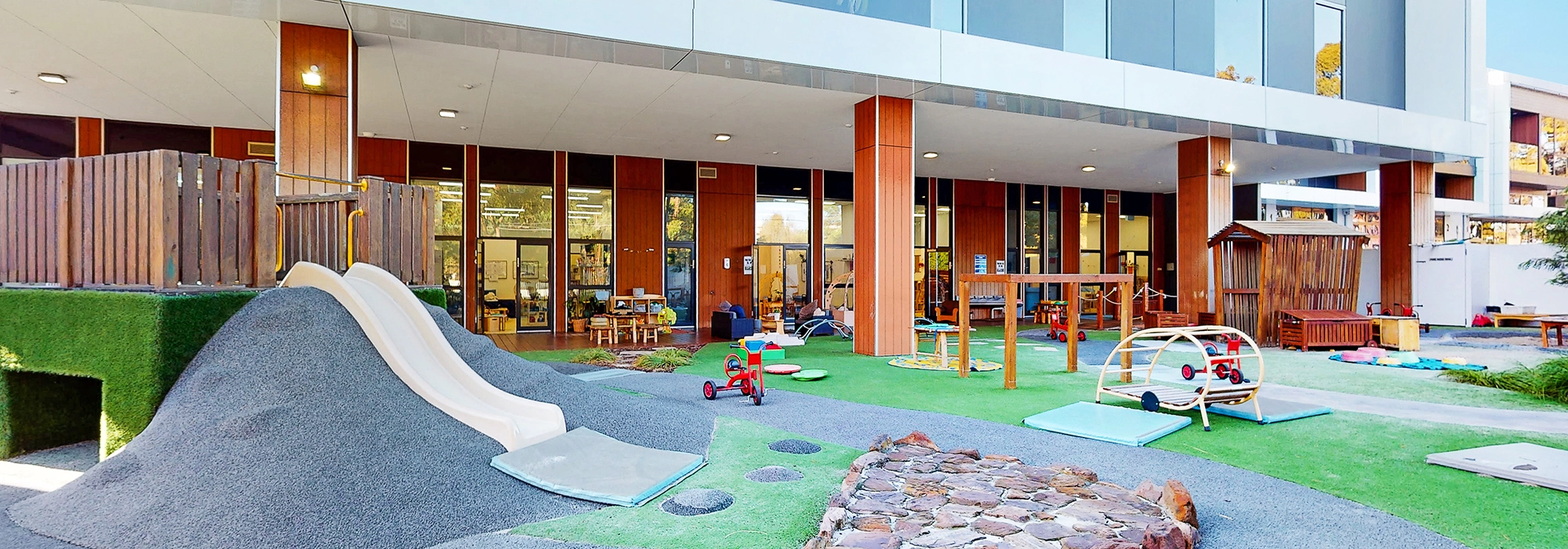 Come see our state-of-the-art facilities including nurturing learning environments. Explore our indoor and outdoor playgrounds with sandpits, a bike track, tunnel and an outdoor undercover play area. Additionally, we feature an expertly designed Kindergarten room.